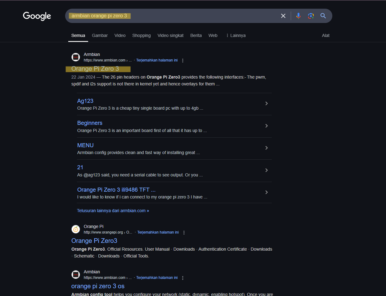 - Download the Armbian operating system that you can get on the official Armbian website, use the keyword “Armbian Orange Pi Zero 3”.