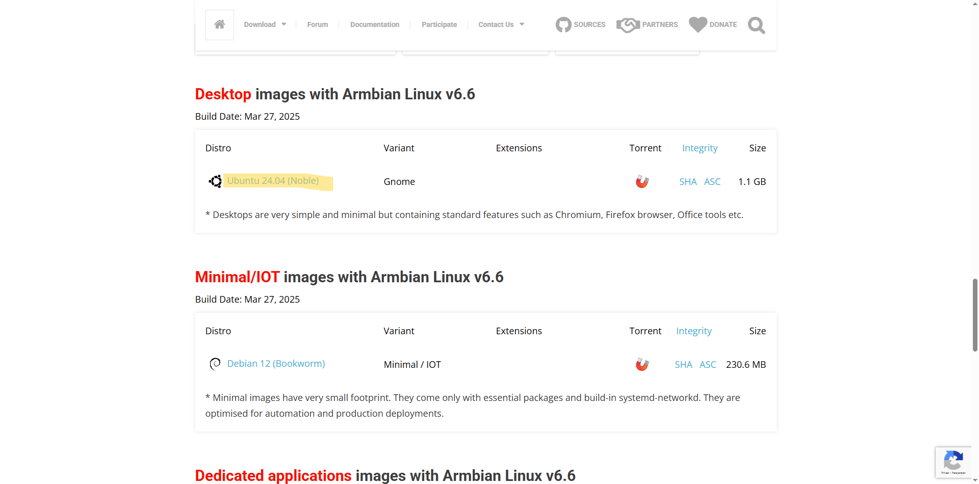 - Scroll to the bottom, here you can see there are 3 types of Armbian operating systems, the first is “Desktop”, namely Armbian which uses a Graphical User Interface (GUI) with the GNOME Desktop Environment which means that Armbian can be used like a regular Desktop PC such as Browsing, the second is “Minimal / IOT”, namely Armbian with a CLI (Command Line Interface) display which means it does not have a Desktop Environment, with CLI display means only a display like Terminal on Linux, and the last is “Dedicated Application Image” honestly I don't know what the difference is compared to the previous two, but if I browse this type of image it is equipped with certain software, for example media servers, home automation, embedded, and others