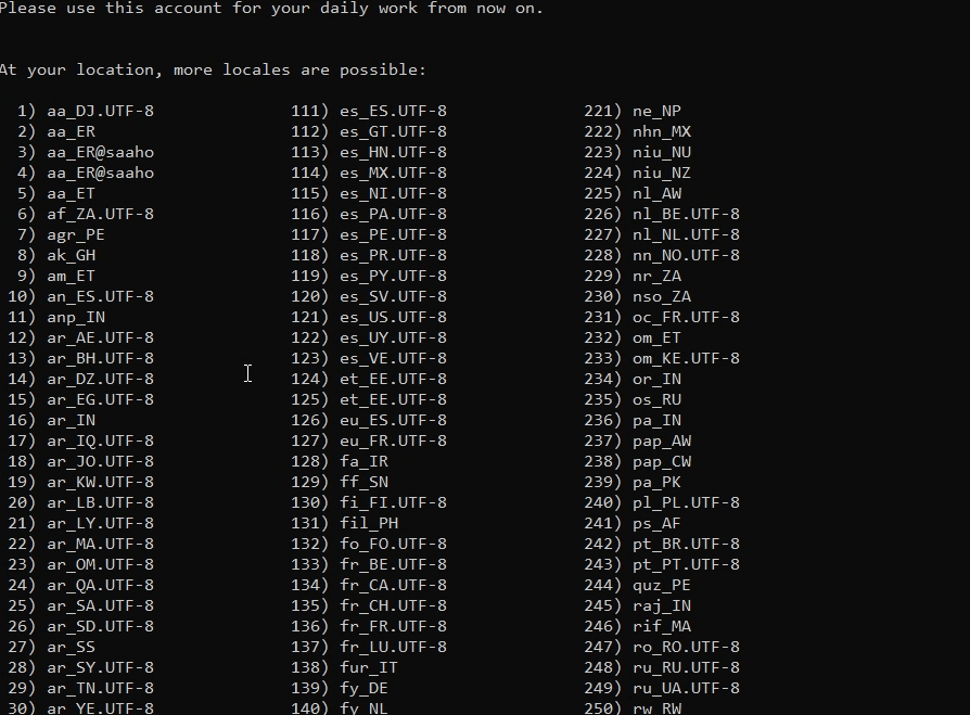 - Next is the Location pili, for this it is free, here I chose the wrong 121 es_us which should be en_us but it doesn't matter.