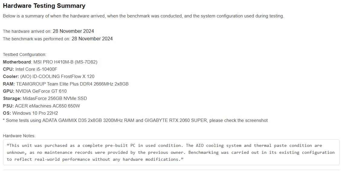 This approach was partially inspired by HWBot, where screenshots serve as verification. HWPure adapted that idea beyond overclocking and applied it to regular hardware testing.